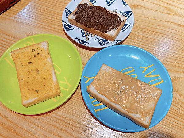 滿滿的吐司和大桶的抹醬 香蒜/ 巧克力/ 花生