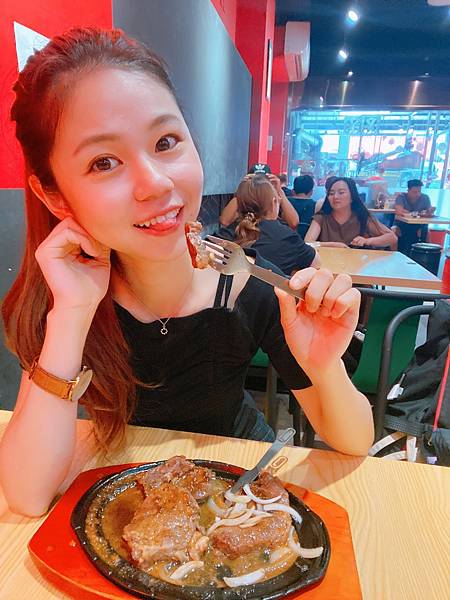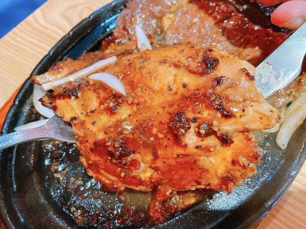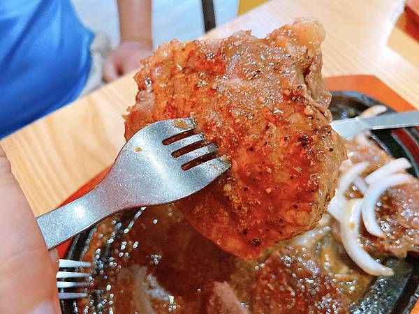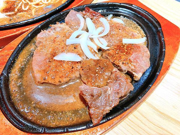 牛排也不遜色 軟嫩口感不卡牙 搭配鐵板洋蔥黑胡椒 口感更升級